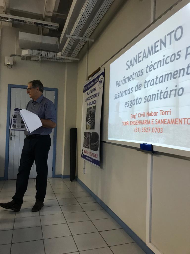 O Engenheiro ministrou uma palestra sobre "Saneamento: parâmetros técnicos para sistemas de tratamento de esgoto sanitário" para estudantes do curso de Engenharia Civil.