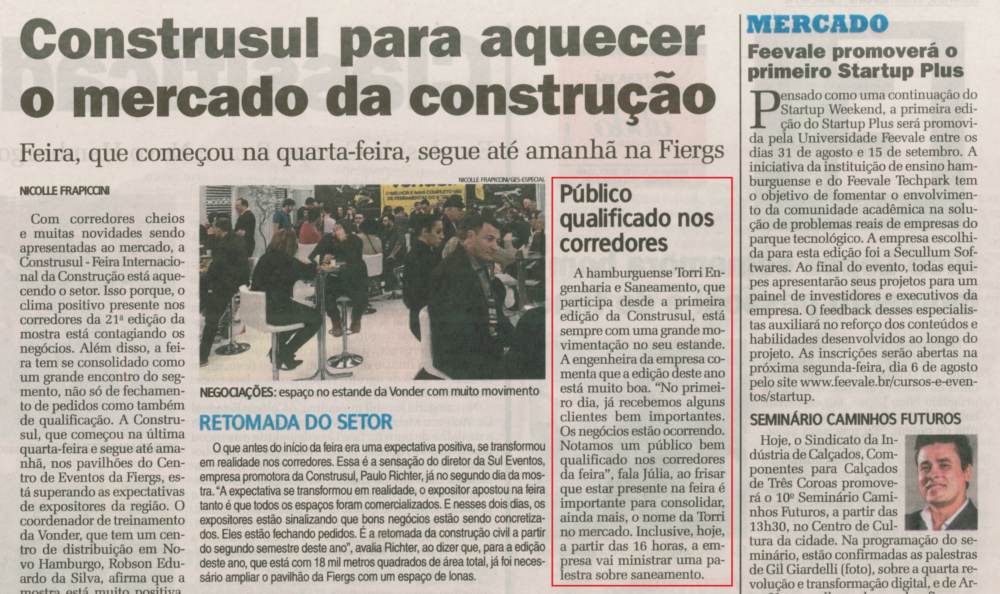 Reportagem da TORRI no Jornal NH sobre a 21ª Construsul:
