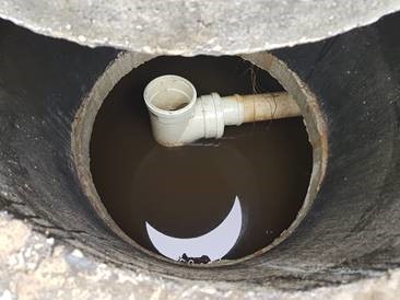(Fossa Séptica não funcionando bem, pois visivelmente não há a degradação da matéria orgânica, visto que não há geração de bolhas)