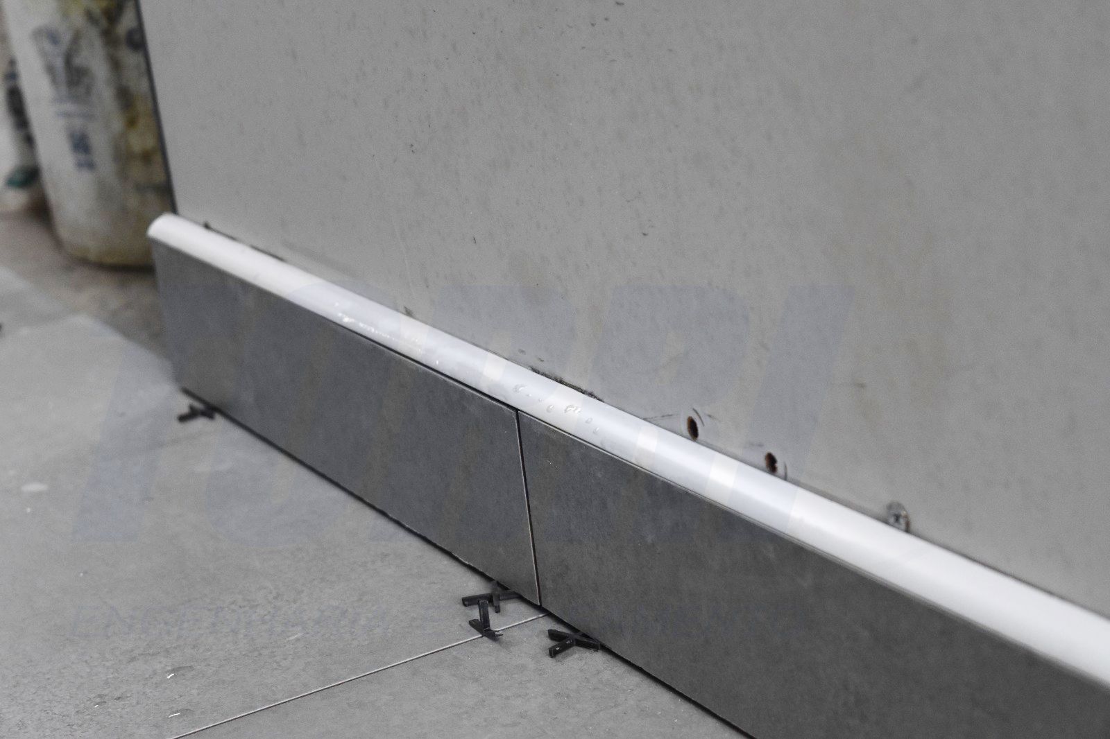 Observação:. o revestimento pode ser instalado totalmente de um lado, faceando o revestimento rente a parede, automaticamente encostando-se a cantoneira a este revestimento, e determina-se a instalação no outro lado da parede.
